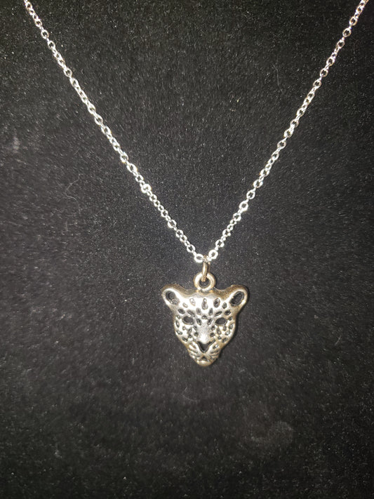 Silver Leopard Head Charm Neckless